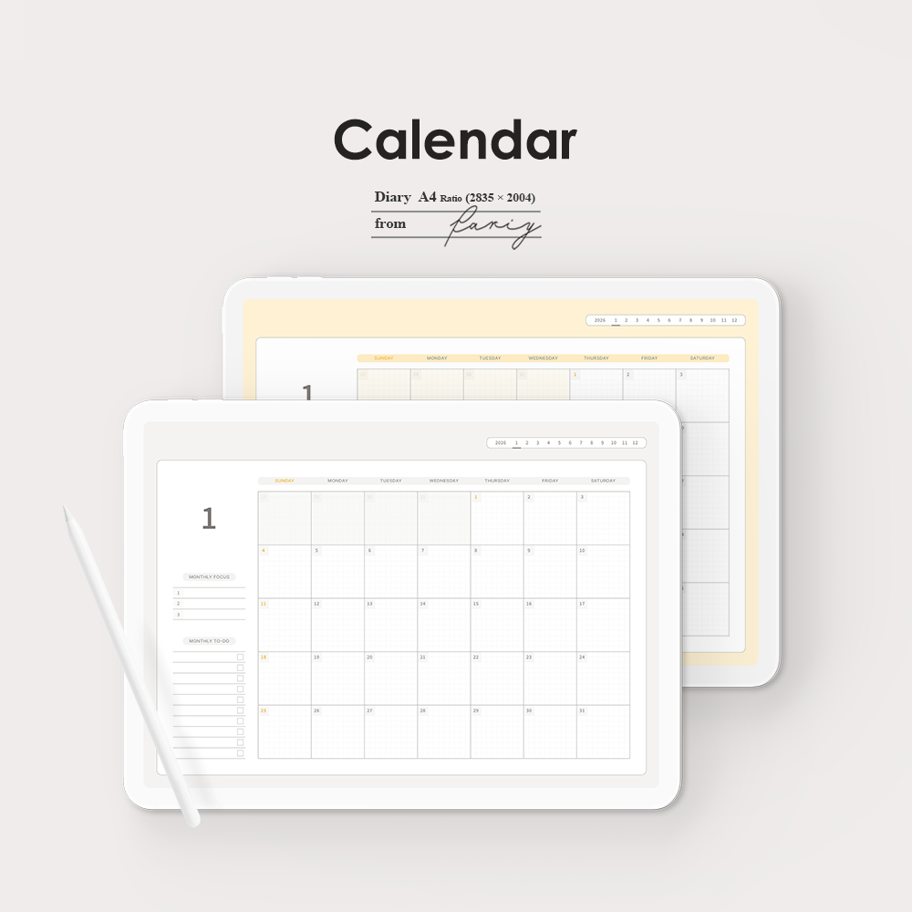 내용 : 2026년 하이퍼링크 굿노트 달력 메모버전 (크림,버터,라벤더)