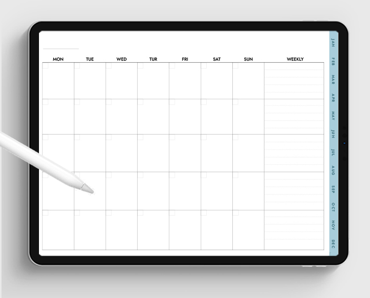 먼슬리는 총 12페이지로, 열두달이 우측 하이퍼링크를 통해