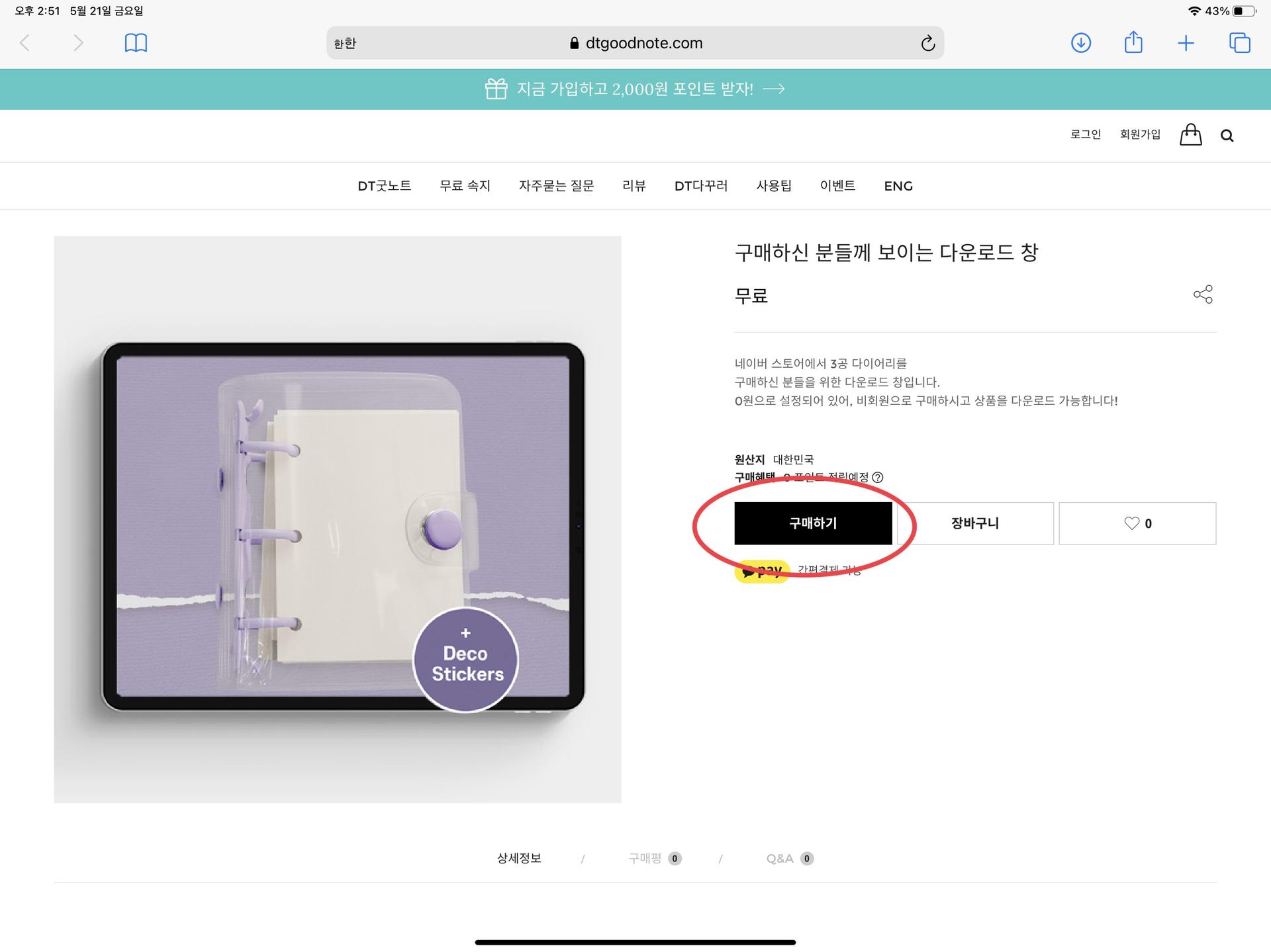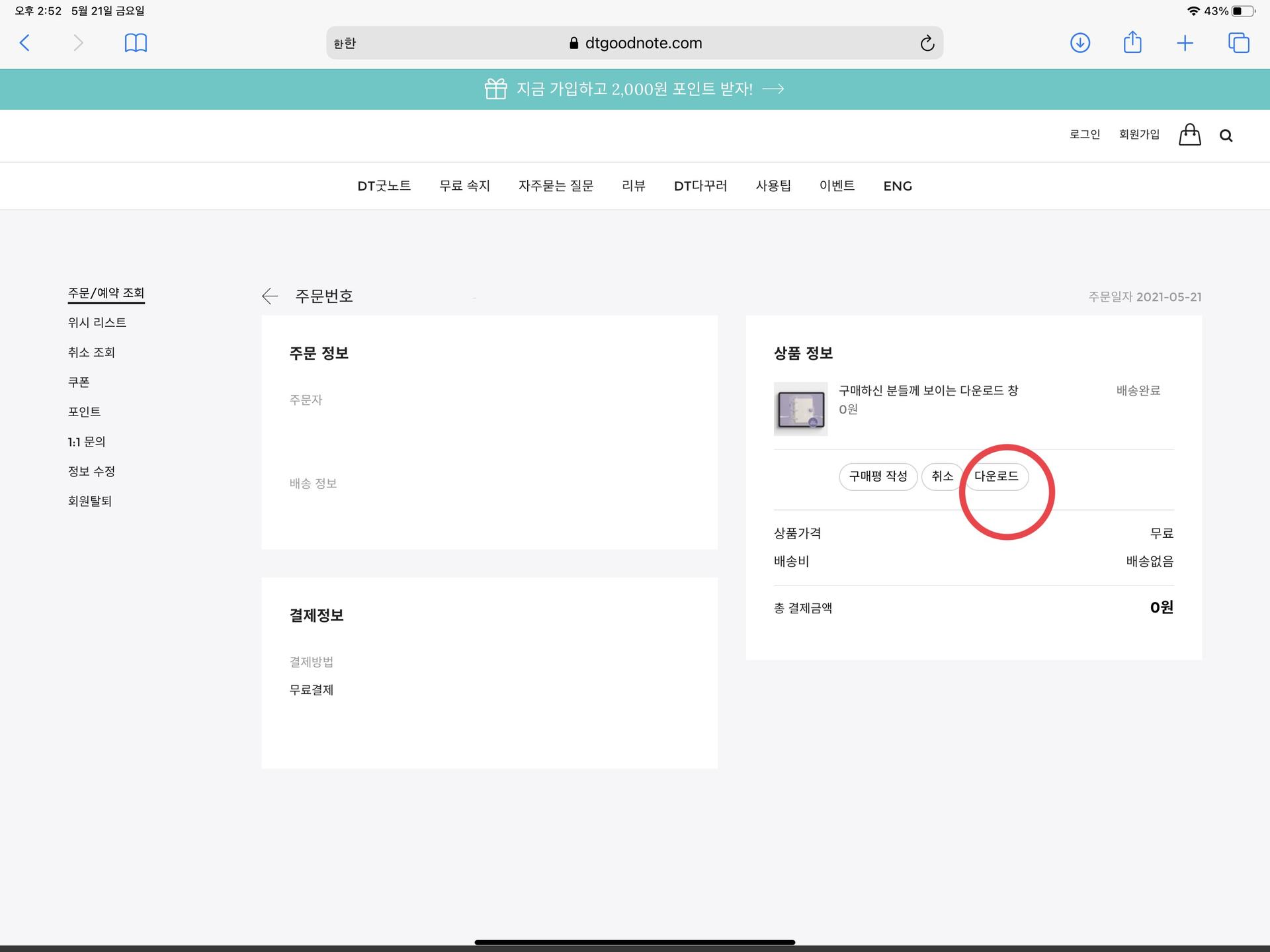 DT 굿노트 회원이신 경우, 0원 구매하기 후 마이페이지에서 다운로드 가능합니다.