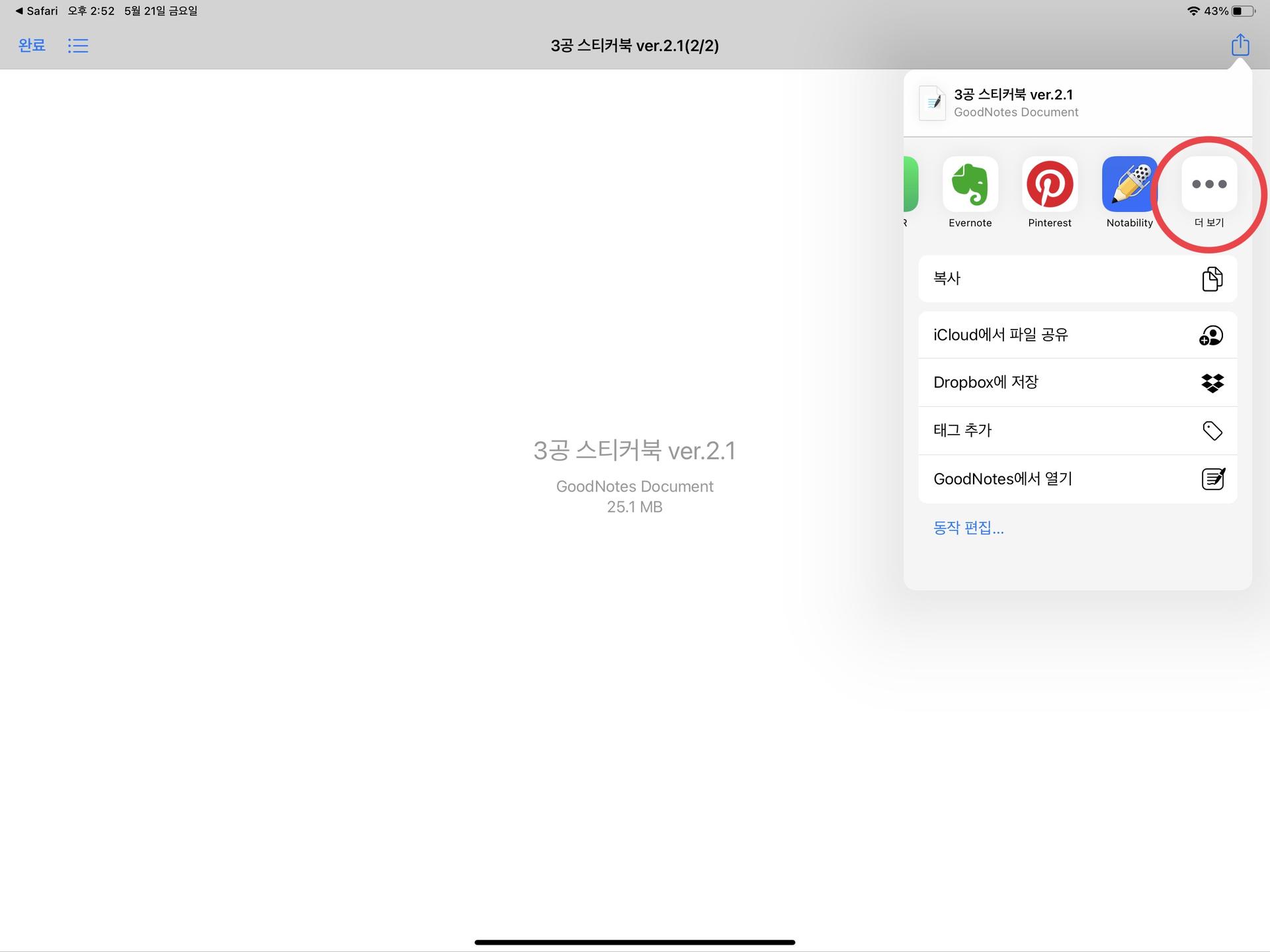 9. 굿노트 앱을 못찾겠는 경우 더보기 란을 클릭해서 찾아주세요