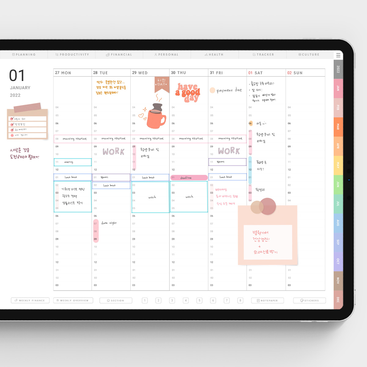 실물 배송상품이 아니며, 아이패드의 굿노트앱이나, 노타빌리티앱에서 사용가능한 서식입니다.