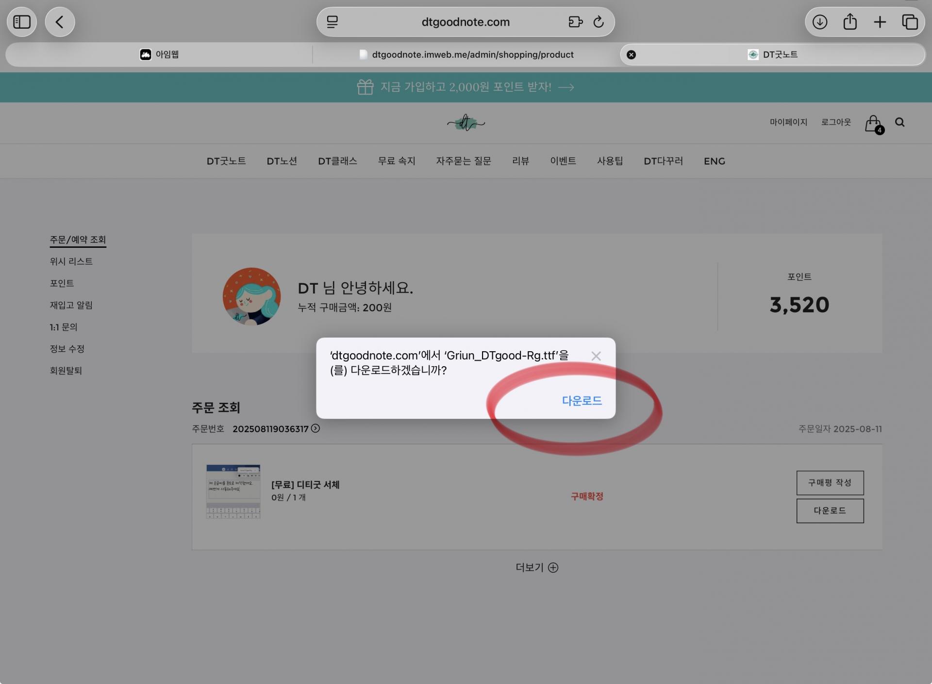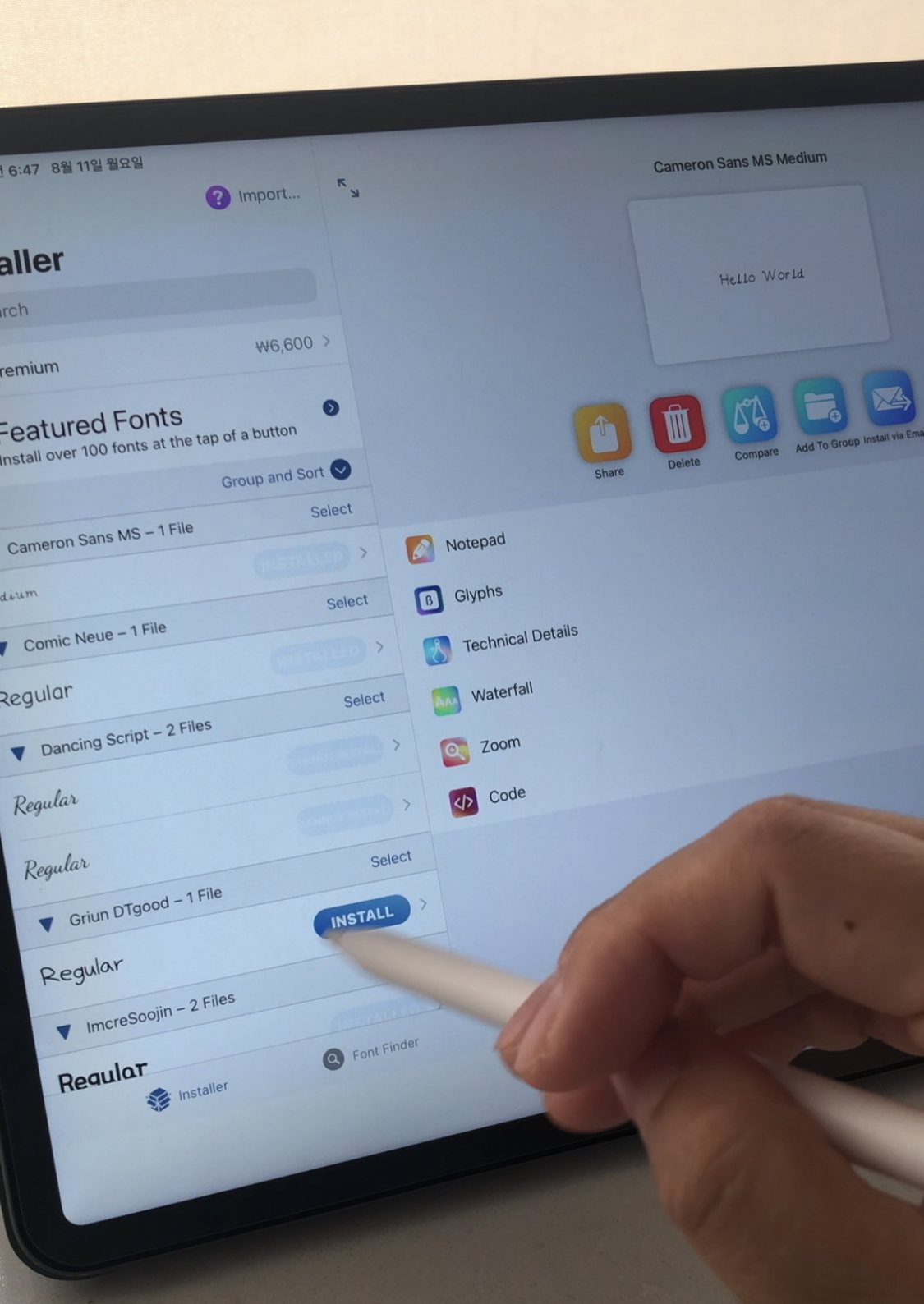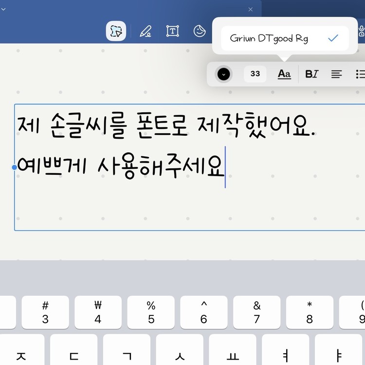 이렇게 마쳤으면, 굿노트에서 여시면 폰트 목록에 내가 다운받은 폰트가 있어요 ^-^