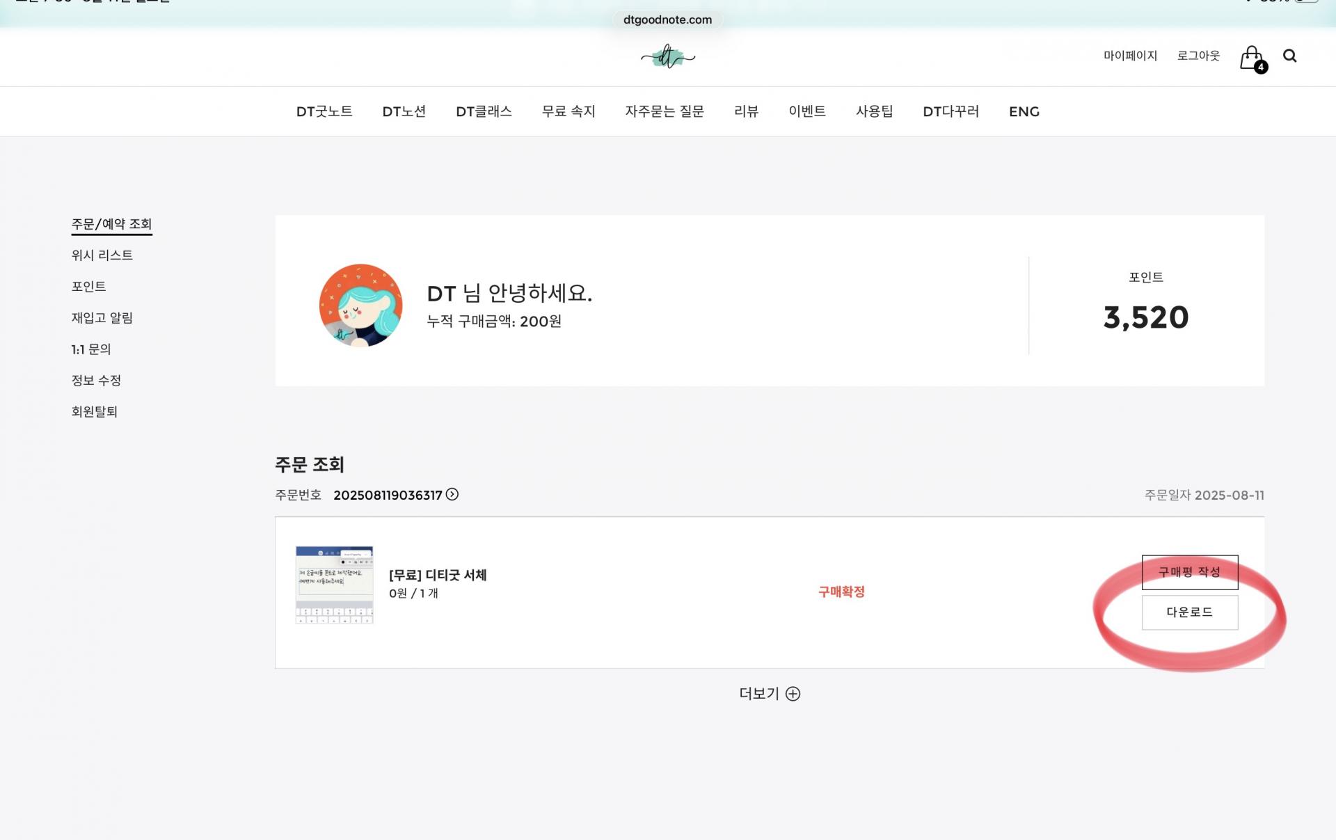 주문번호로 조회하여 상품 다운로드 가능합니다!