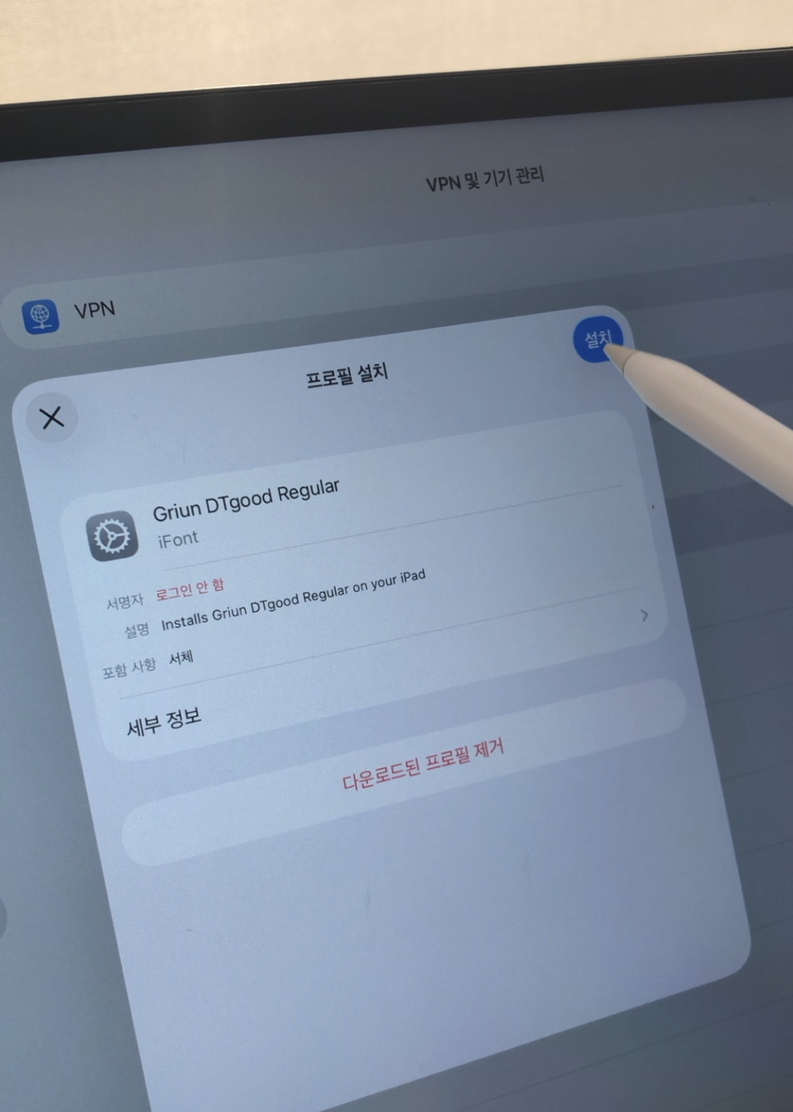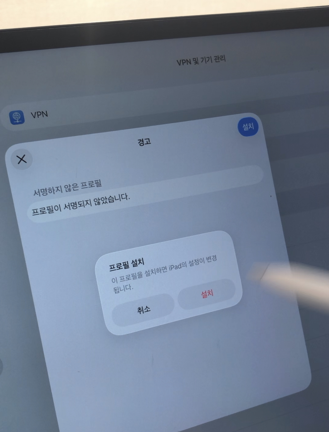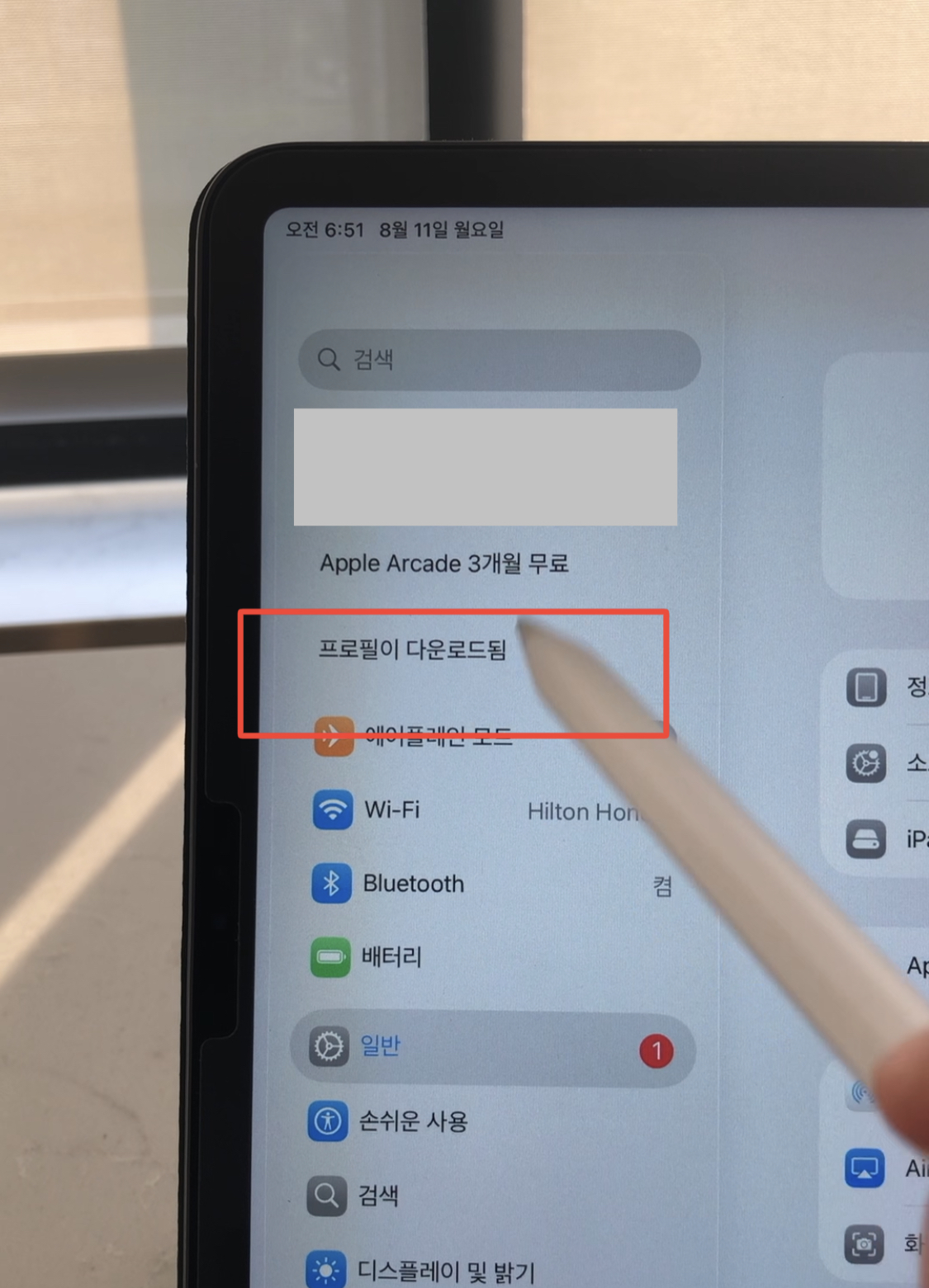 설정앱에 들어가보면 [프로필이 다운로드됨] 여길 클허해주면 됩니다.