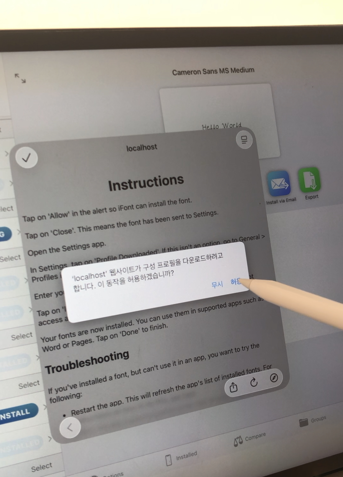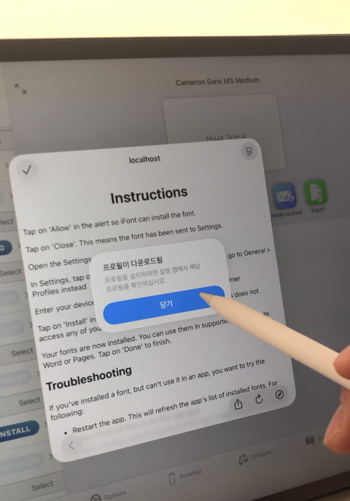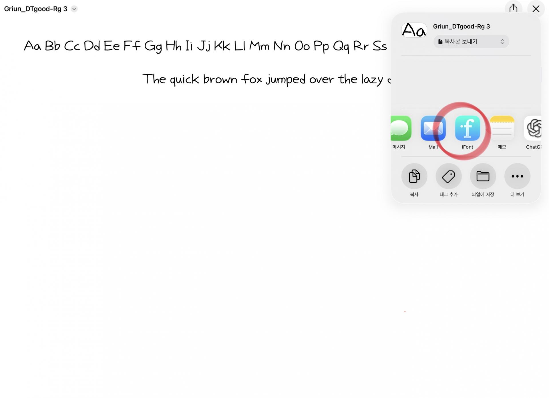 Ifont 라는 어플이 필요해요. 먼저 다운받아다셨다면